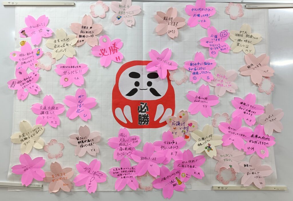 集会では4人の子育てを通して感じたこと、またPTA活動と民生委員の経験を元に、子育てと福祉に対する私の掲げるお約束を皆様にお話しさせていただきました。児童福祉・社会福祉ともに専門知識はありませんが、地域の一員として同じように困っている方や声をあげにくい方に寄り添える存在になれればと思っています。